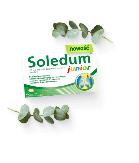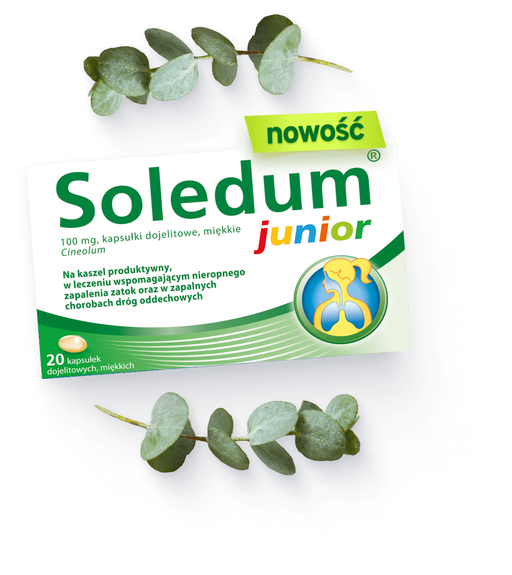 w drogach oddechowych, utrudniając dziecku oddychanie. Soledum® junior: łagodzi niedrożność zatok i oskrzeli, bo nie tylko wspiera usuwanie wydzieliny, ale także ogranicza jej nadmierną produkcję wynikającą z reakcji zapalnej organizmu.